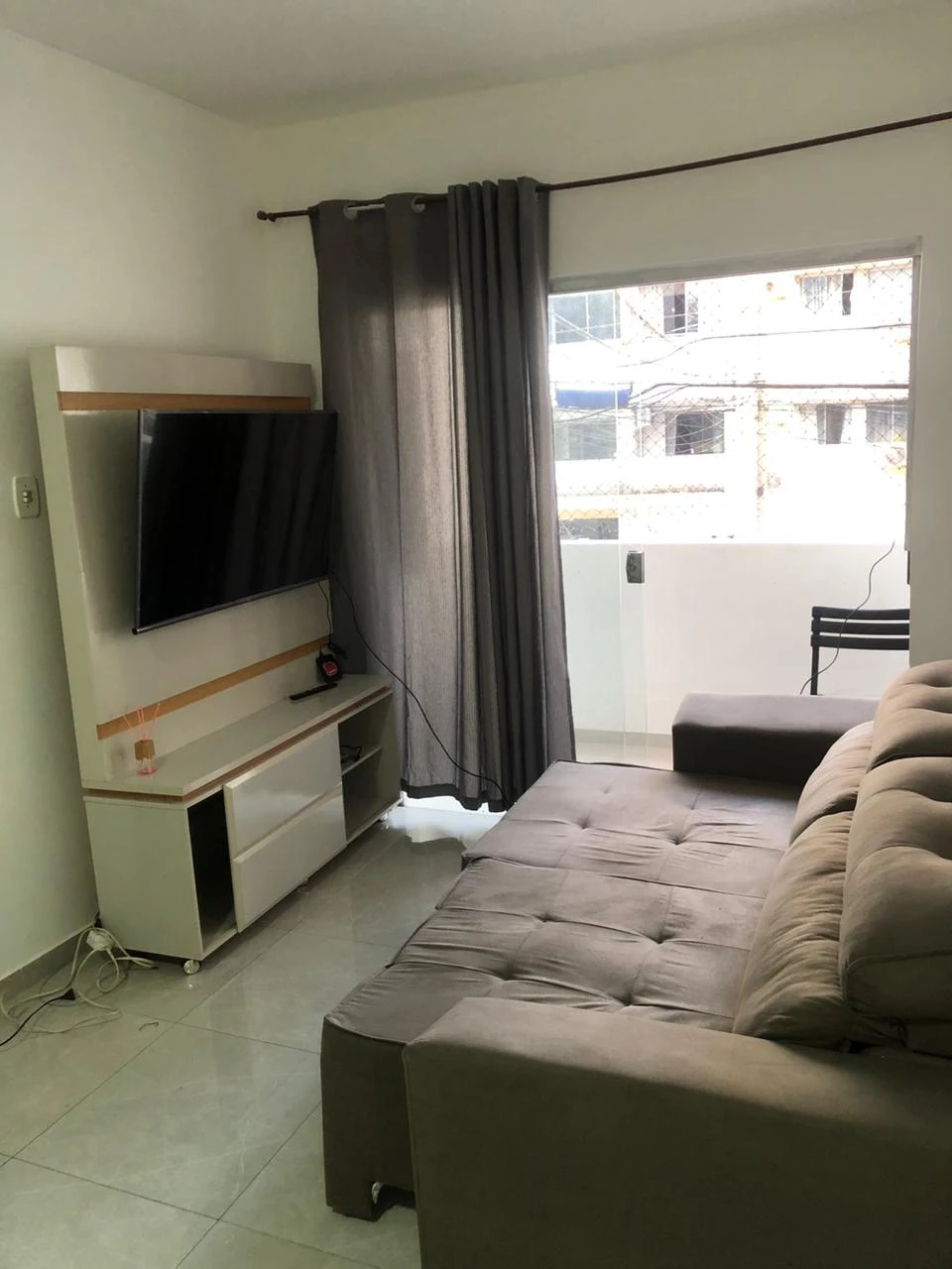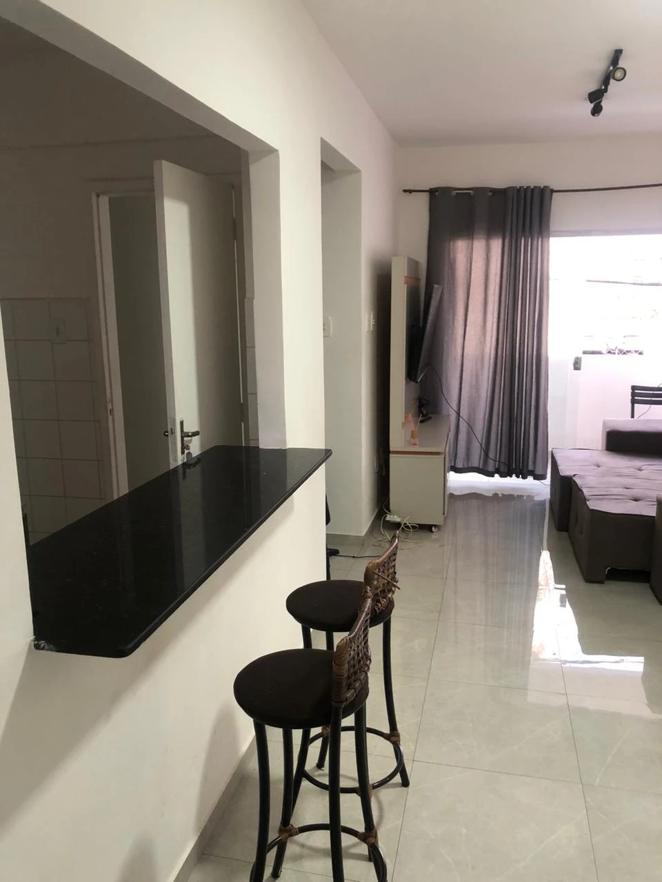 Apartamento mobiliado todo reformado no porcelanato, com dois quatos sendo uma suíte;