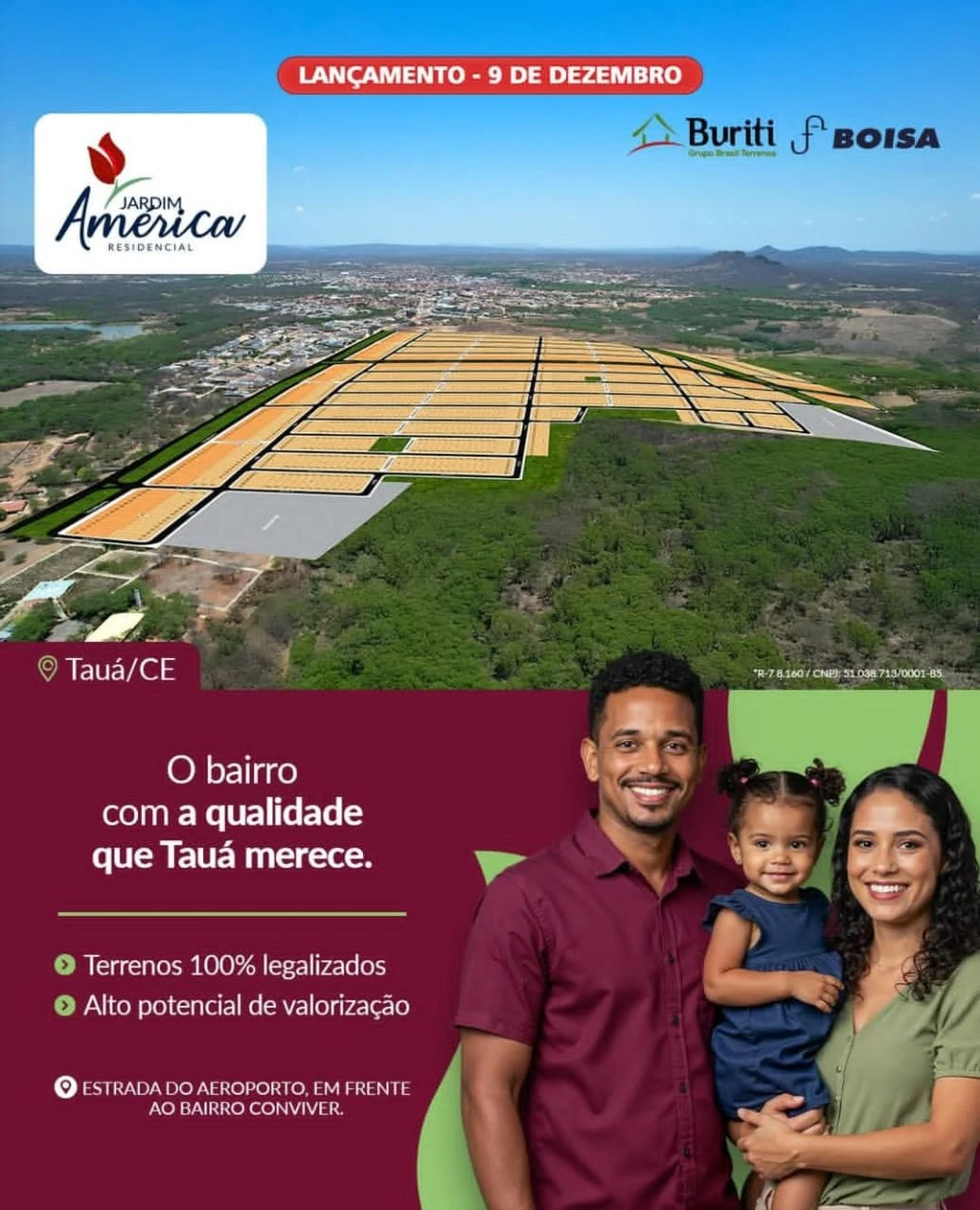 LOTEAMENTO JARDIM AMÉRICA - Terá Infraestrutura completa; Praças para conforto e segurança para você e para sua família